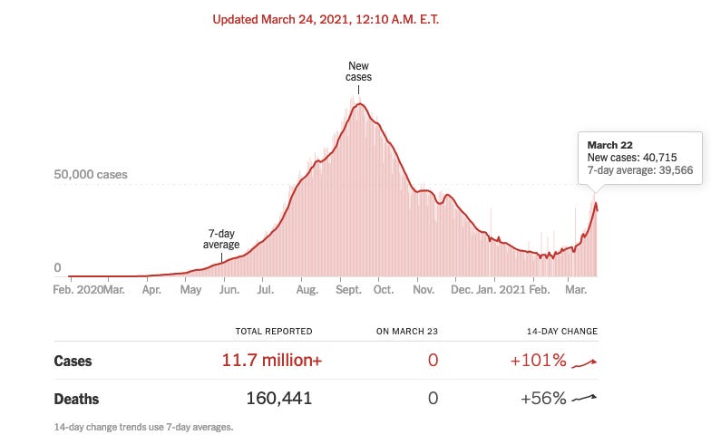 India is doing well with the vaccine rollout and that is going to be critical to reduce spread. From April 1st, anyone over the age of 45 will be eligible for vaccines -