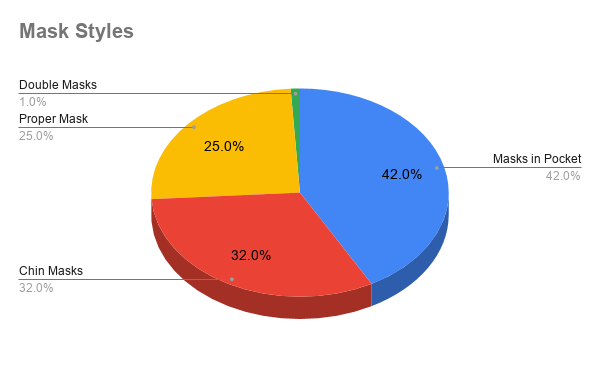 Chin masks - These individuals do have a mask on their face, but not covering their nose since that would be too inconvenient. One of the more interesting variants of this category is when individuals lower the mask below their mouth especially when talking since we are loquacious by nature and do not like being muffled.