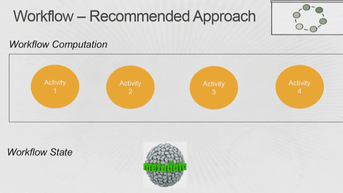 For complex long running workflows, intermediate steps in a workflow can fail. It might be possible to restart a workflow that is able to resume from failed intermediate steps. Hence each state within the workflow should be idempotent in itself.